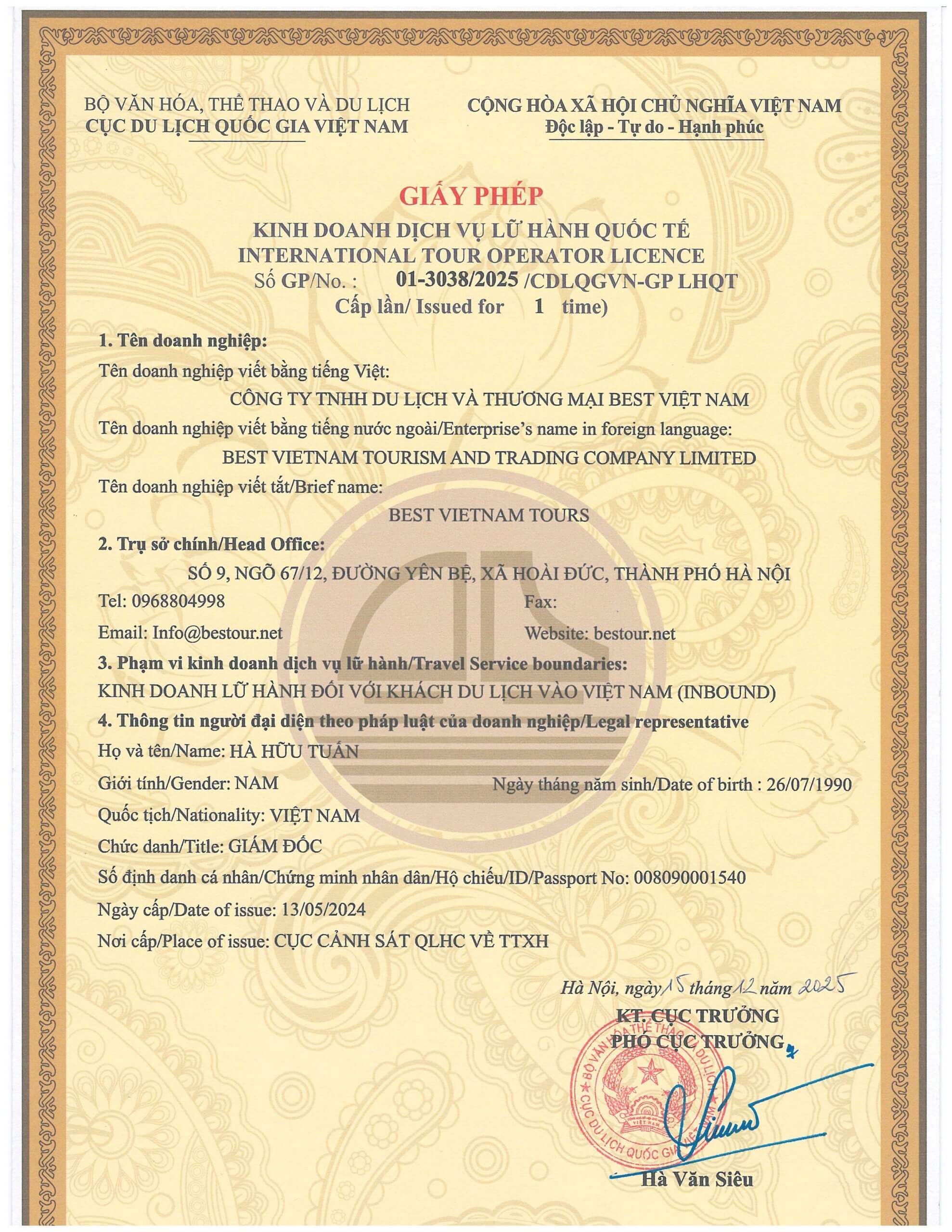 International Tour Operator License No: 01-3038/2025/CDLQGVN-GP LHQT Issued by Vietnam National Administration of Tourism