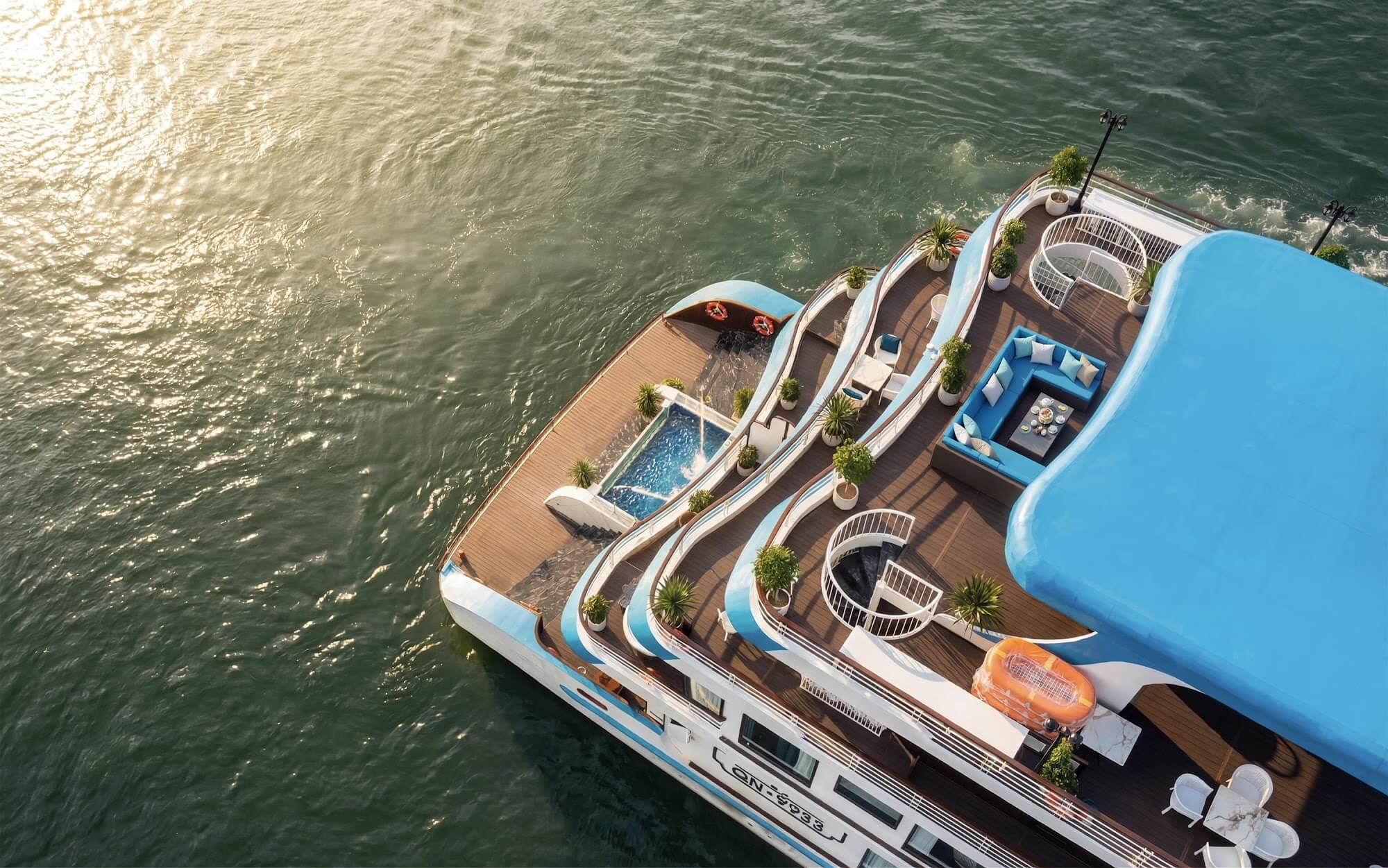 • Spacious cabins up to 45m² – among the largest in Halong Bay