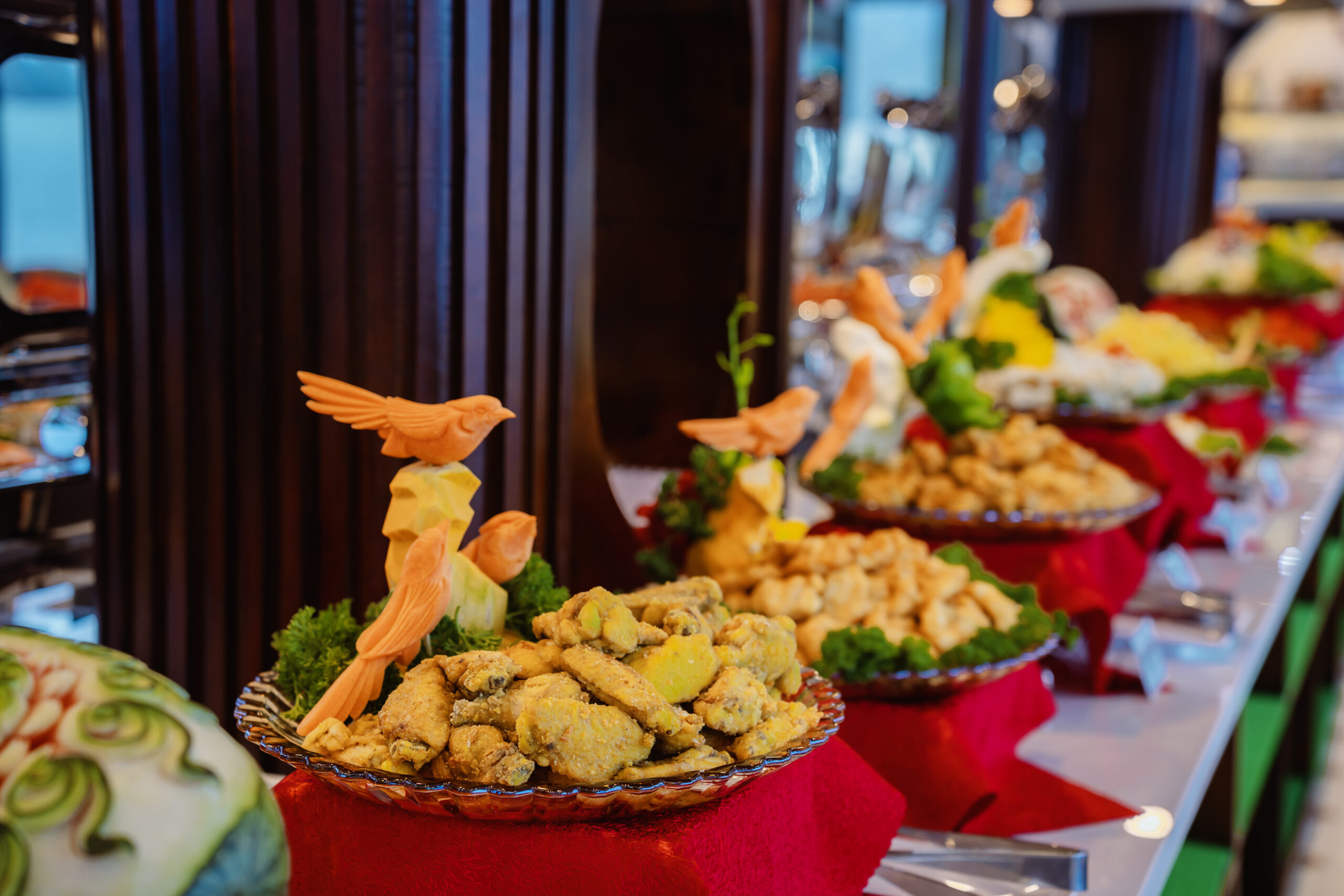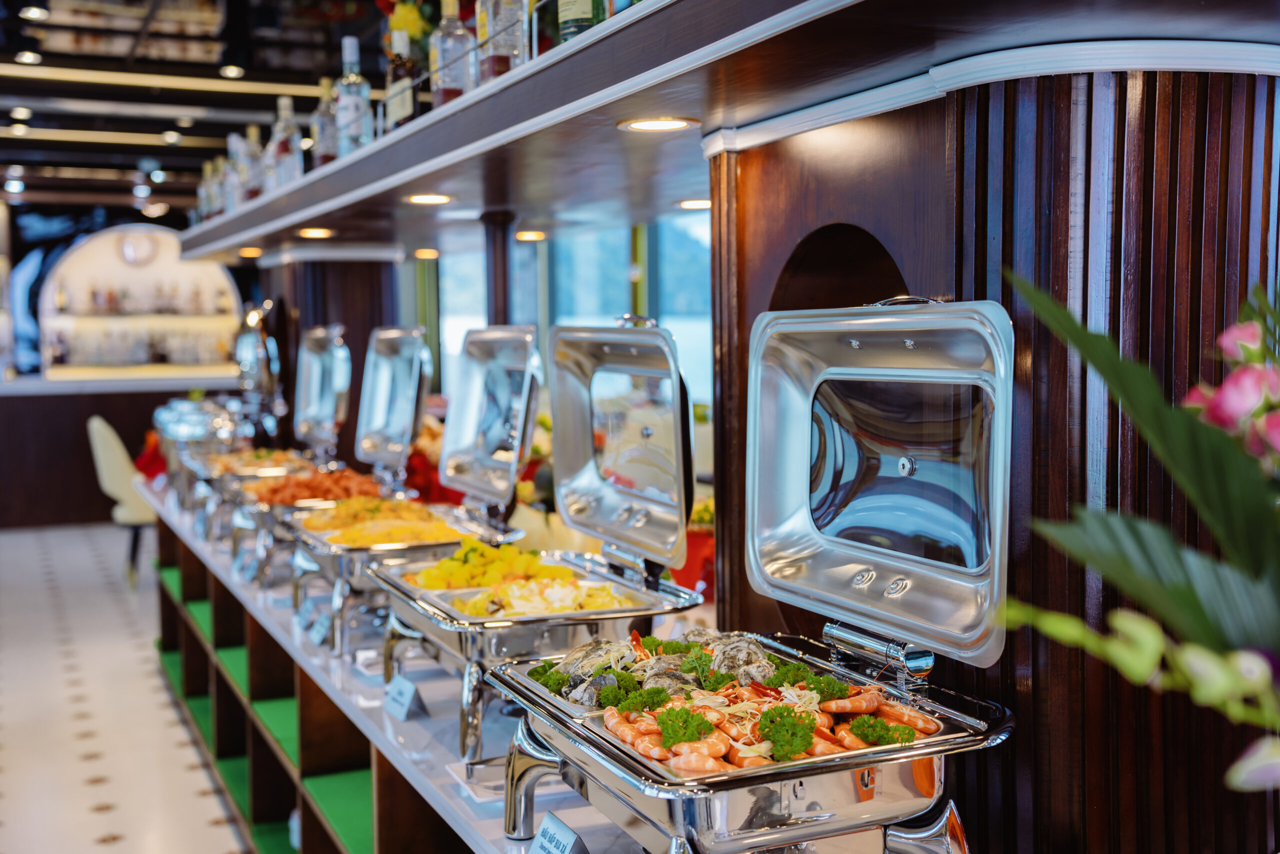 Enjoy a delicious Vietnamese seafood buffet with vegetarian options available on request.